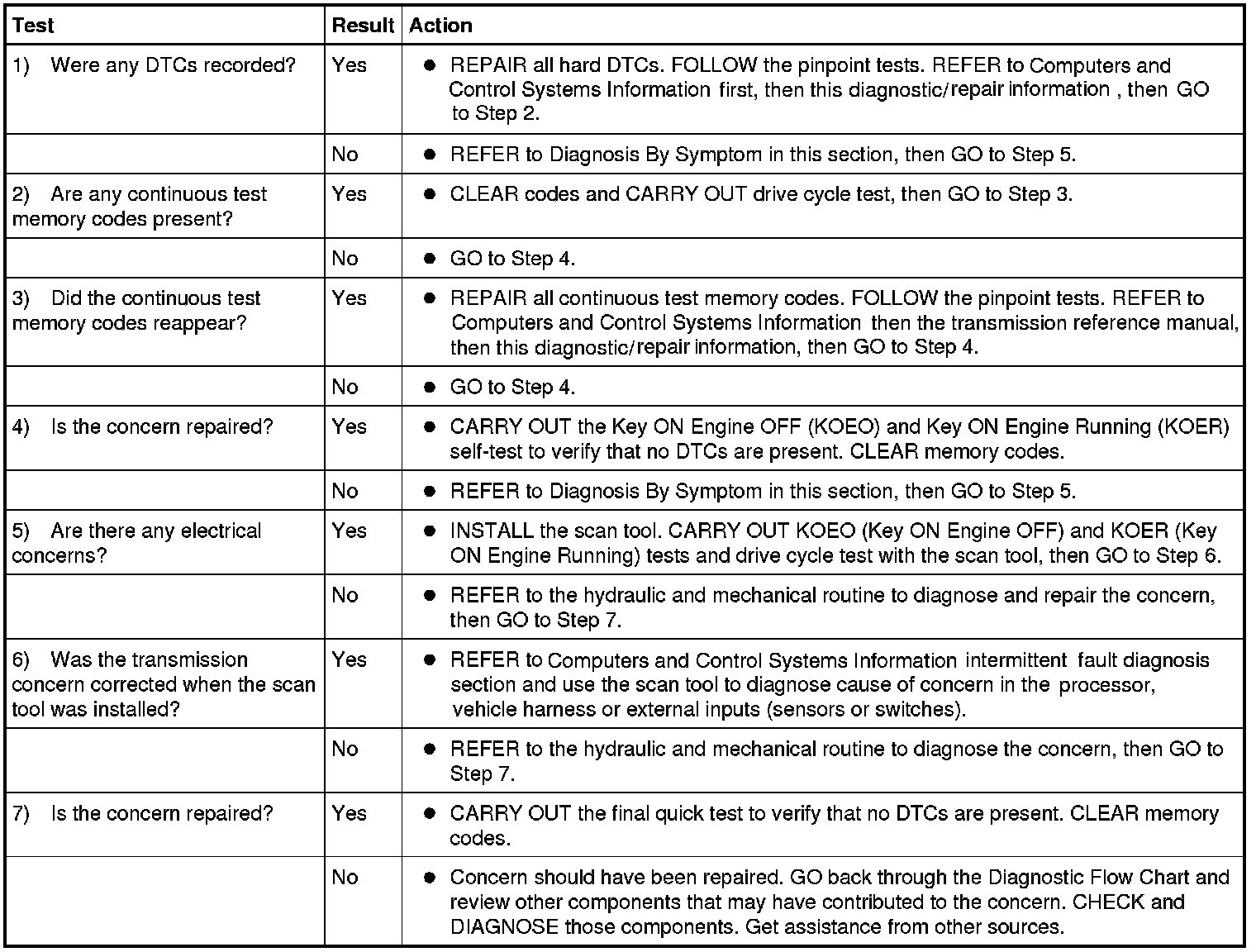 - Carry out both Key ON Engine OFF (KOEO) and Key ON Engine Running (KOER) Self Test. Visual Inspection