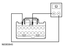 - Measure the resistance between DCSM (Dual Climate Controlled Seat Module) C3036C-4, circuit VHS21 (BU/WH), harness side and ground.