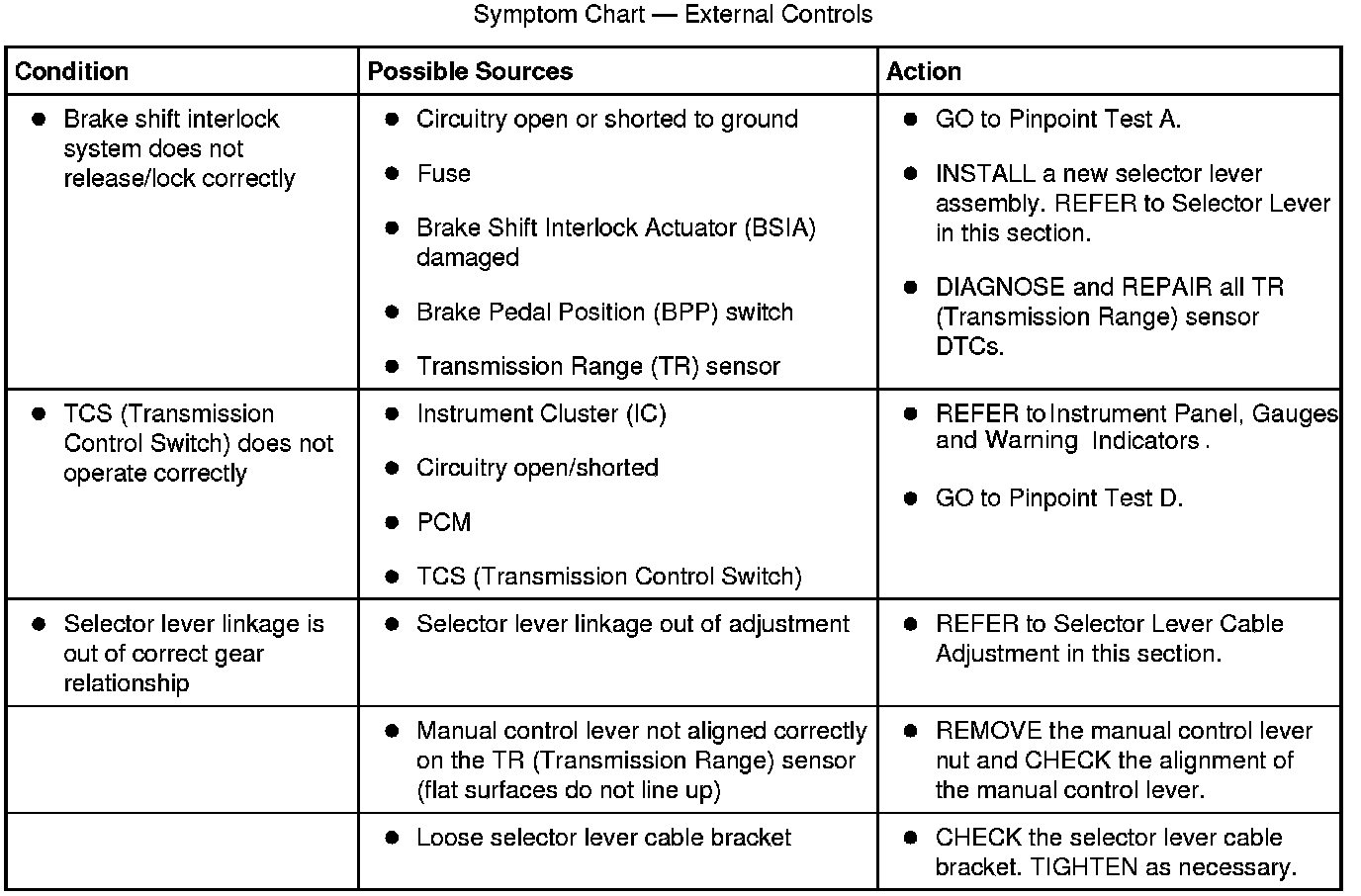 Symptom Chart - External Controls
