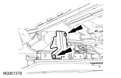 - Separate the wire harness from the outboard OCS (Occupant Classification System) weight sensor bolt protection bracket, remove the 2 outboard OCS (Occupant Classification System) weight sensor bolt protection bracket screws and remove the outboard OCS (Occupant Classification System) weight sensor bolt protection bracket.