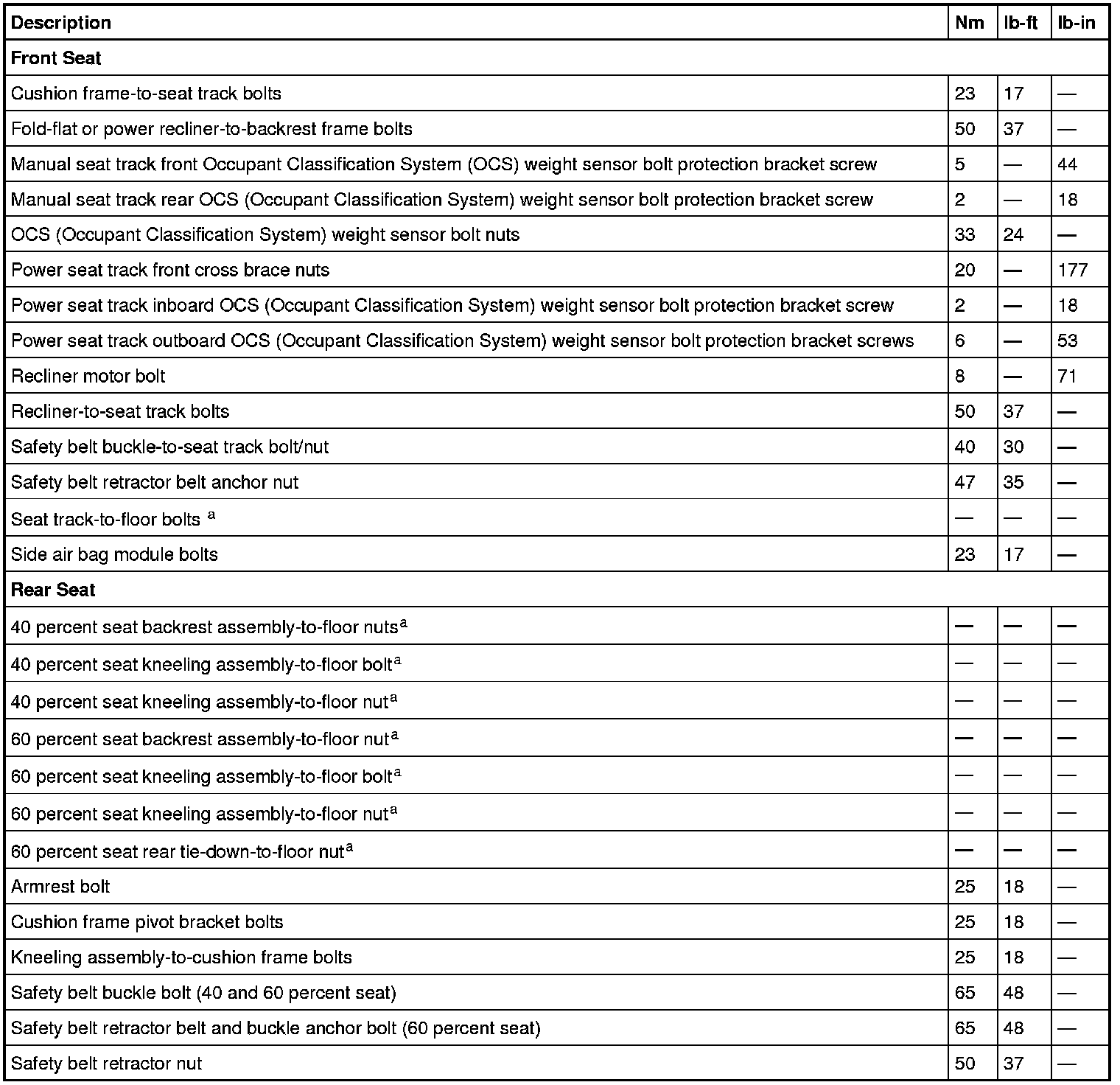 Seats: Specifications