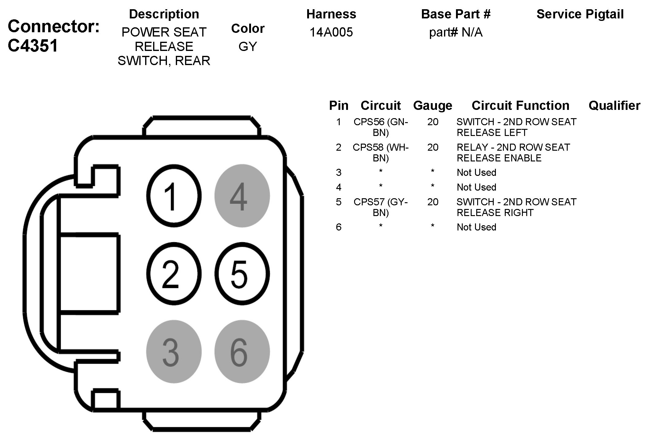 C4351 Power Seat Release Switch, Rear
