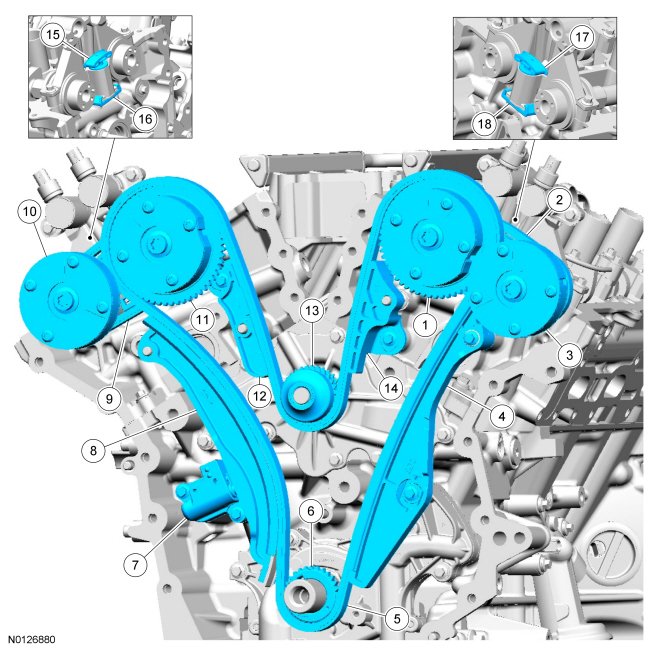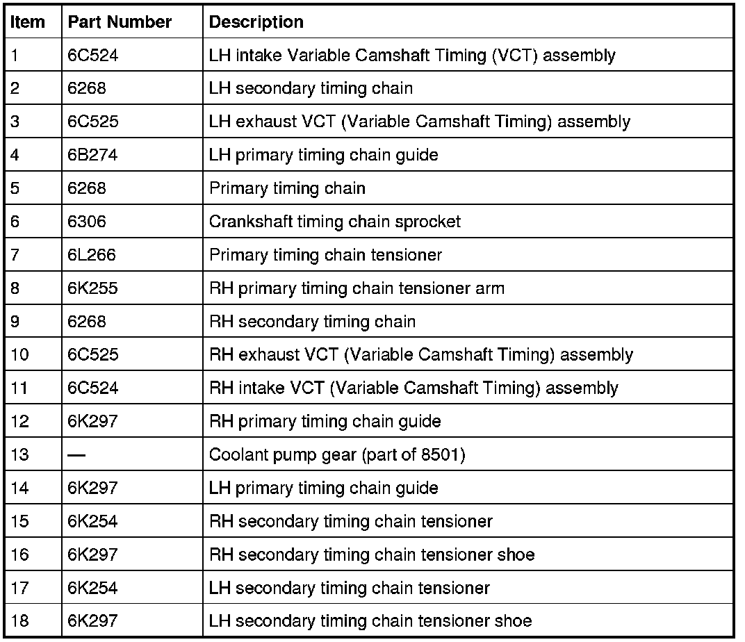 LH VCT (Variable Camshaft Timing) assemblies and the LH secondary timing chain.