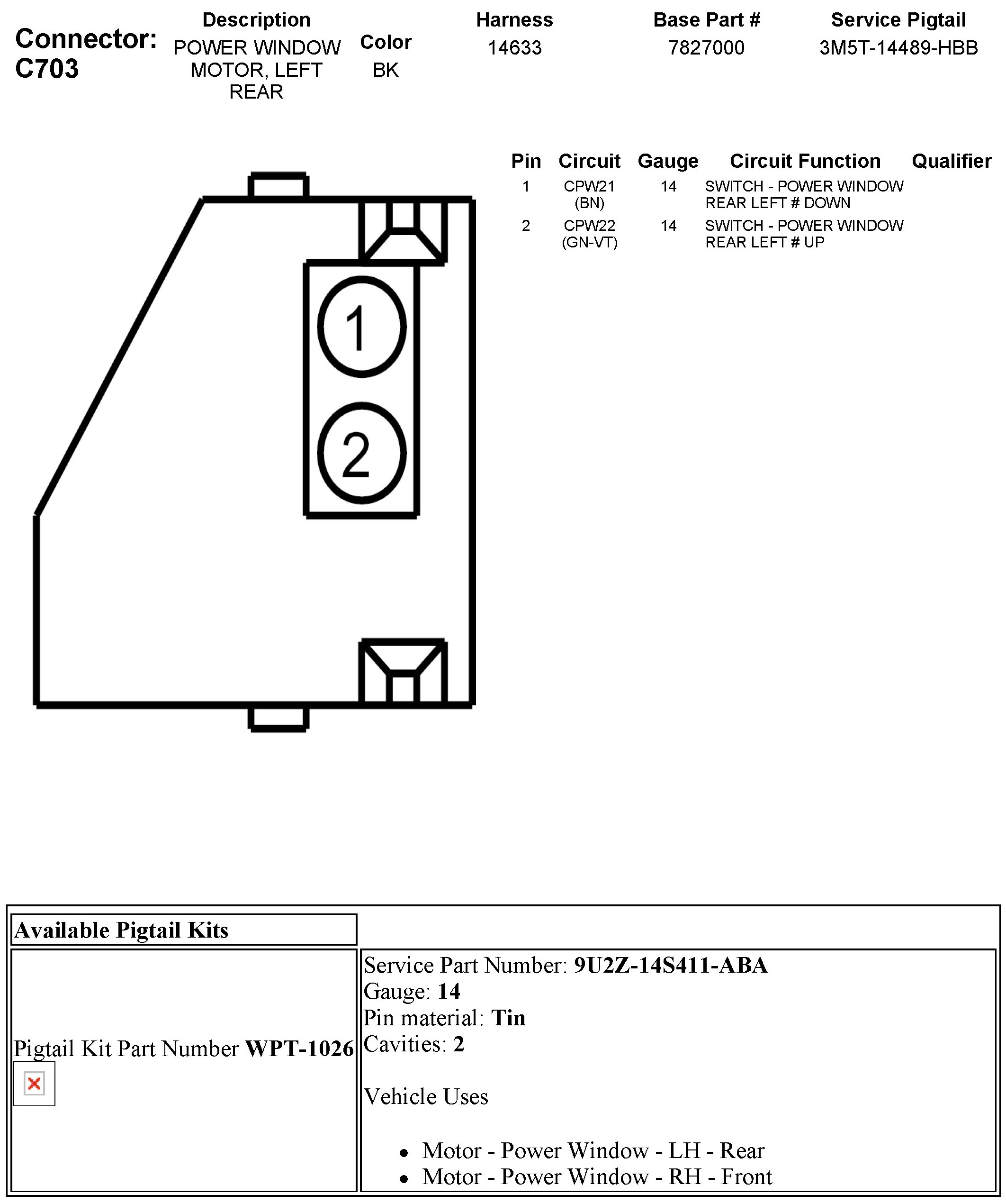 C703 Power Window Motor, Left Rear