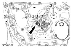 NOTE: The front window motor must be de-initialized, then initialized whenever the LH or RH (MKX) or LH (Edge) front window motor is removed from the window regulator drum housing, a new window regulator is installed, a new window glass is installed, a new top run is installed or for any operation in which grease or lubricants are applied to the window regulator or glass run.