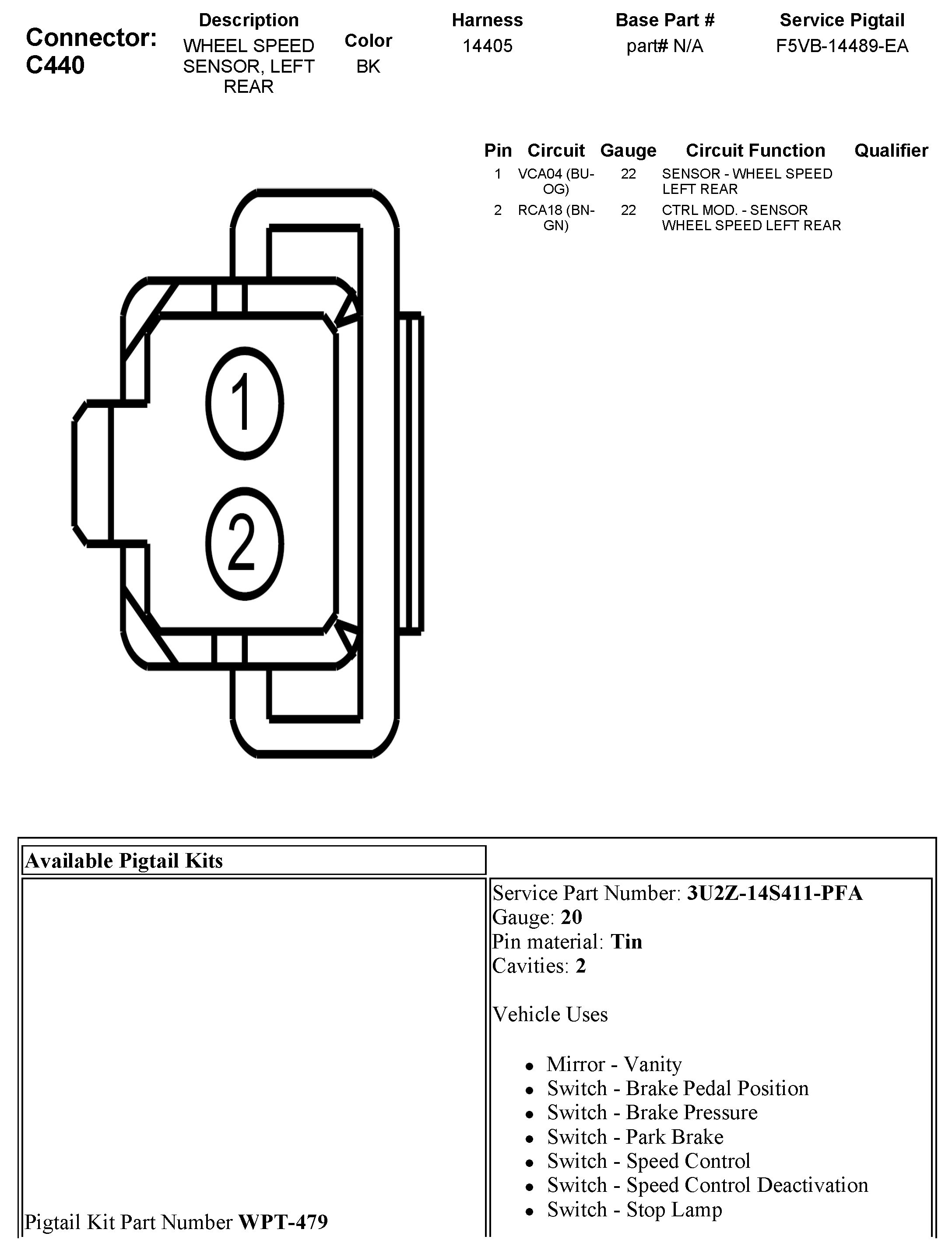 C440 Wheel Speed Sensor, Left Rear