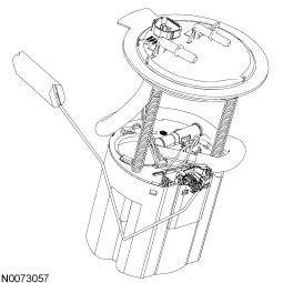 The FP module is a device that contains the fuel pump and sender assembly. The fuel pump is located inside the FP module and supplies fuel through the FP module manifold to the engine and FP module jet pump. The jet pump continuously refills the reservoir with fuel, and a check valve located in the manifold outlet maintains system pressure when the fuel pump is not energized. A flapper valve located in the bottom of the reservoir allows fuel to enter the reservoir and prime the fuel pump during the initial fill.