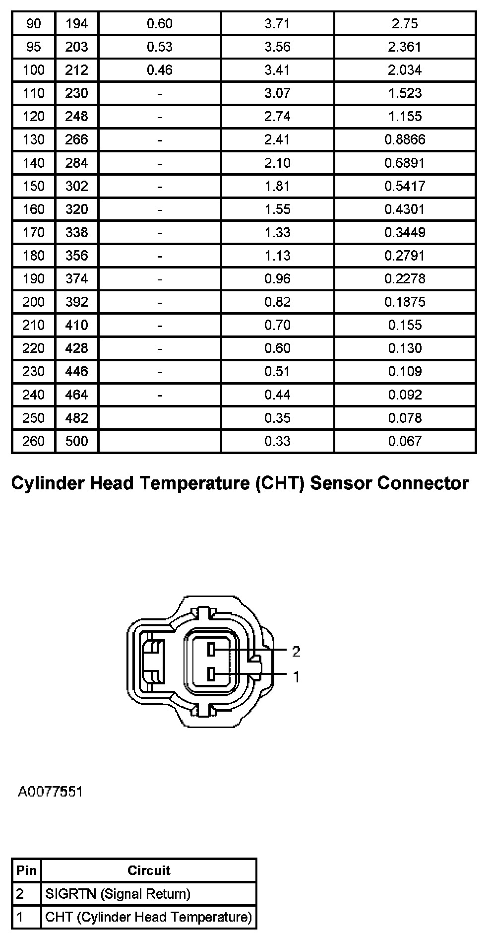 Cylinder Head Temperature Sensor Expected Values And Cylinder Head Temperature (CHT) Sensor Connector: