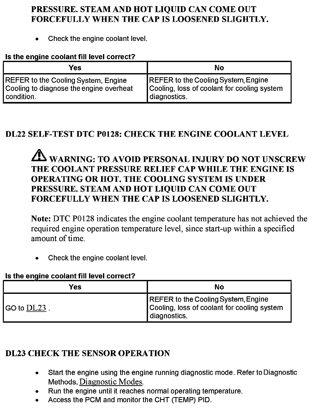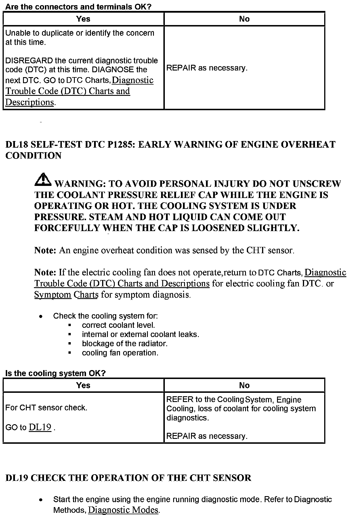 Cylinder Head Temperature Sensor Expected Values: