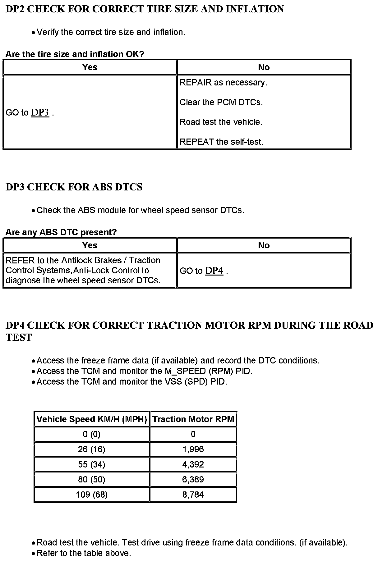 Test DP: Powertrain Control Module (PCM) Vehicle Speed