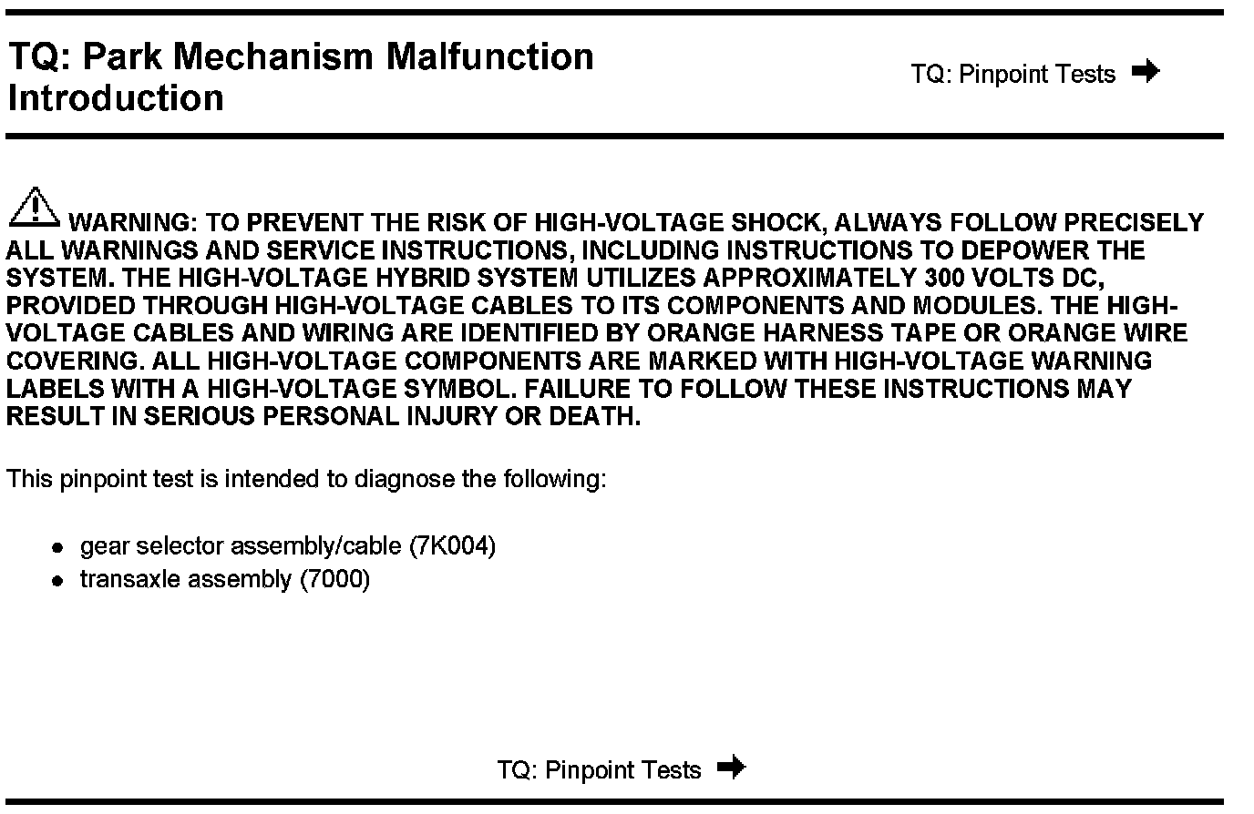 PINPOINT TEST TQ: PARK MECHANISM MALFUNCTION