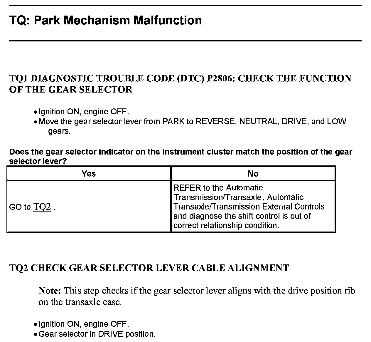 Test TQ: Park Mechanism Malfunction