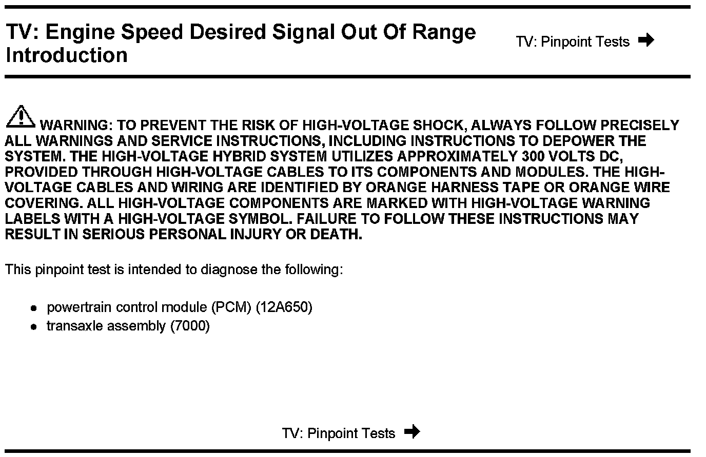 PINPOINT TEST TV: ENGINE SPEED DESIRED SIGNAL OUT OF RANGE