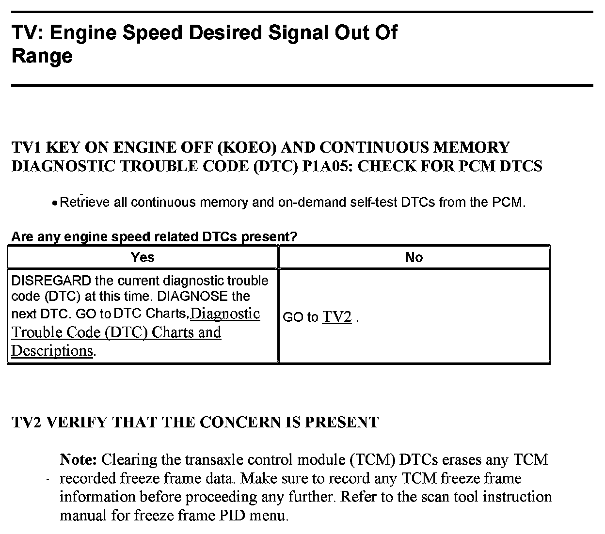 Test TV: Engine Speed Desired Signal Out Of Range