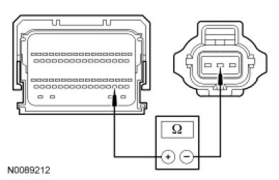 - Measure the resistance between the generator C102A-2 (2.5L) or C1104A-2 (3.0L), circuit CDC10 (BU/OG), harness side and ground.
