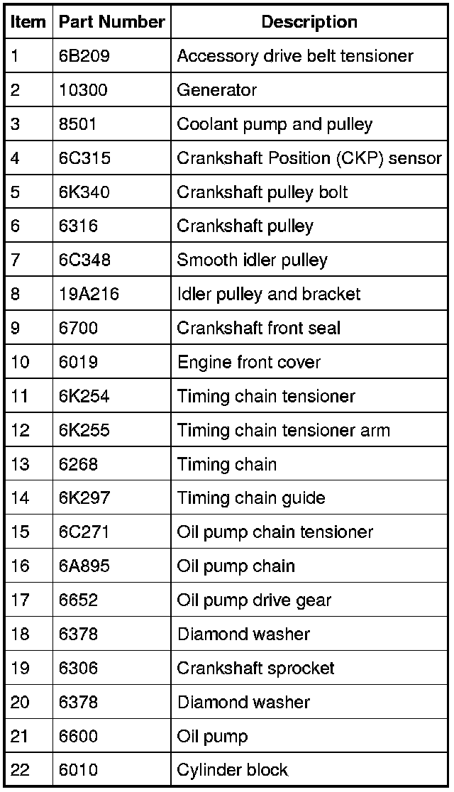 NOTICE: During engine repair procedures, cleanliness is extremely important. All parts must be thoroughly cleaned and any foreign material, including any material created while cleaning gasket surfaces, that enters the oil passages, coolant passages or the oil pan, can cause engine failure.