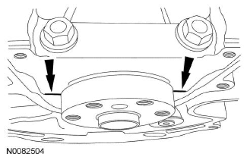 3. Position the main bearing beam in the engine block with the main bearing beam mounted flush with the rear face of the engine block.
