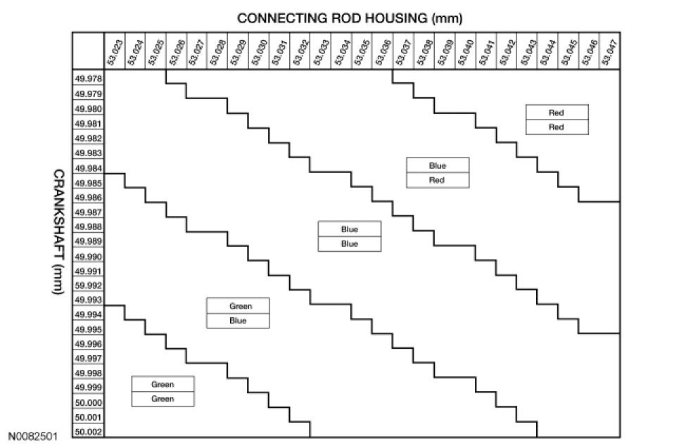 10. Using the chart, select the correct connecting rod bearings for each crankshaft connecting rod journal.