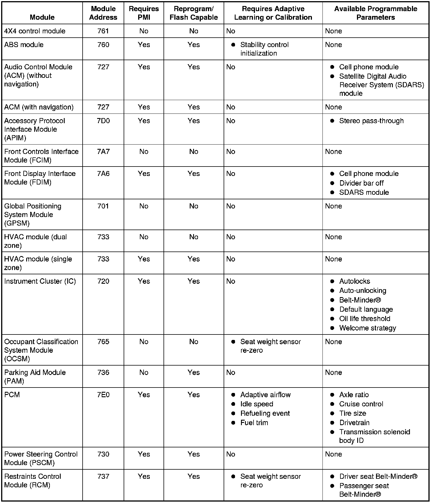Programmable parameters are customer preference items that may be modified by the dealer via scan tool or in some cases modified by the customer following a procedure listed in the vehicle Owner's Literature. While many configuration options may exist for a module, only a few of these options are programmable parameters.