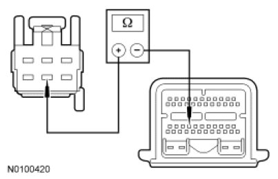 - Measure the resistance between selector lever harness C2096-5, circuit CET34 (BN/GN) and PCM C175T-31, circuit CET34 (BN/GN).