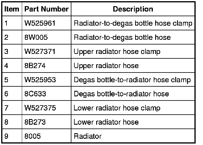 3. Disconnect the radiator-to-degas bottle hose and upper radiator hose from the radiator.
