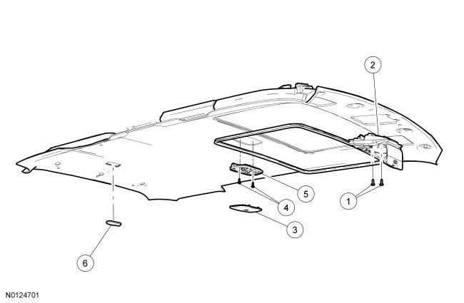 2. Pull the overhead console down and remove the console from the headliner retainer.