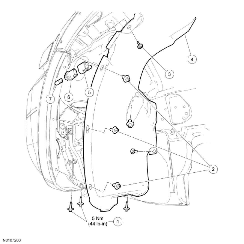 4. Remove the 4 fender splash shield bolts.