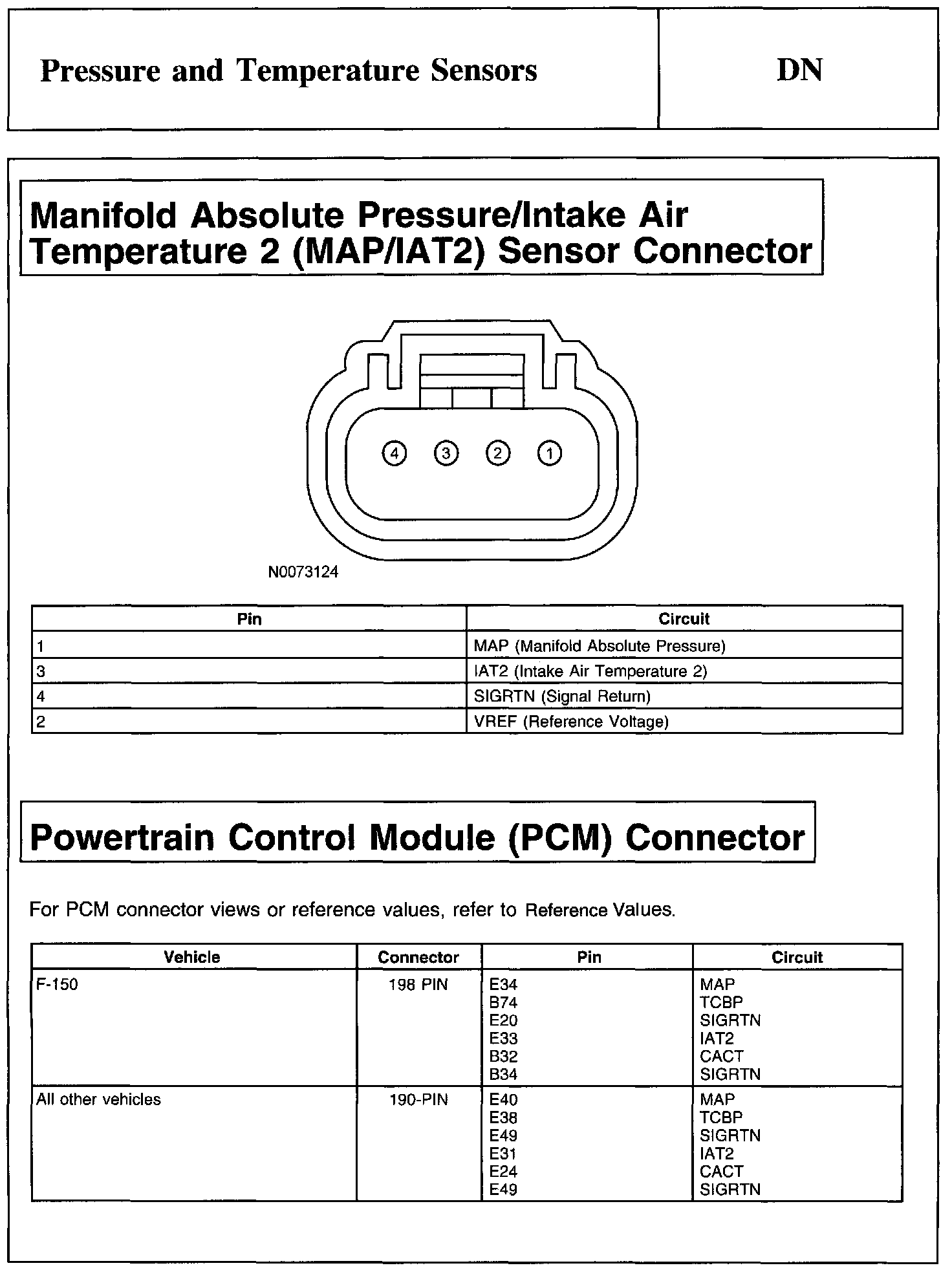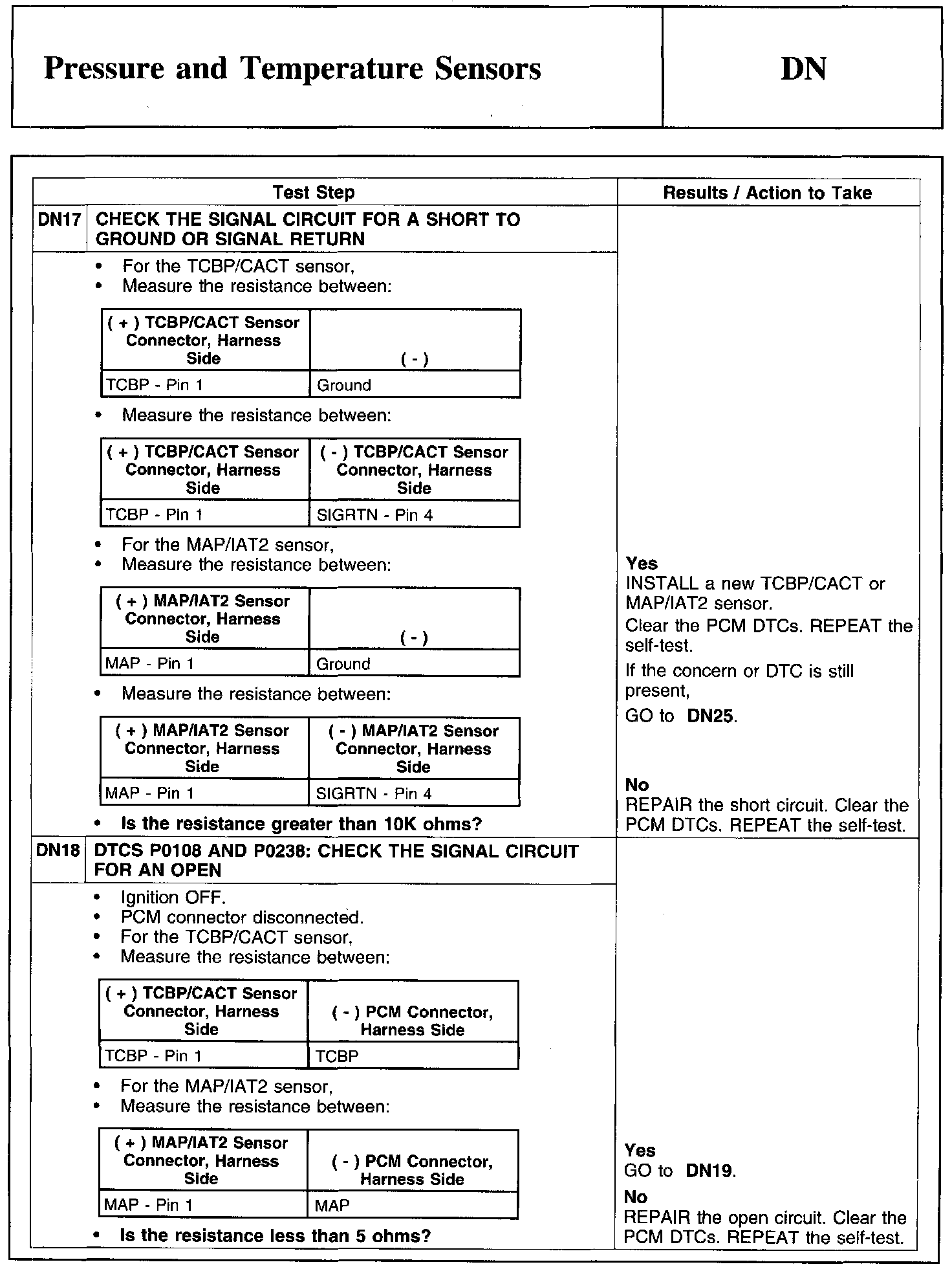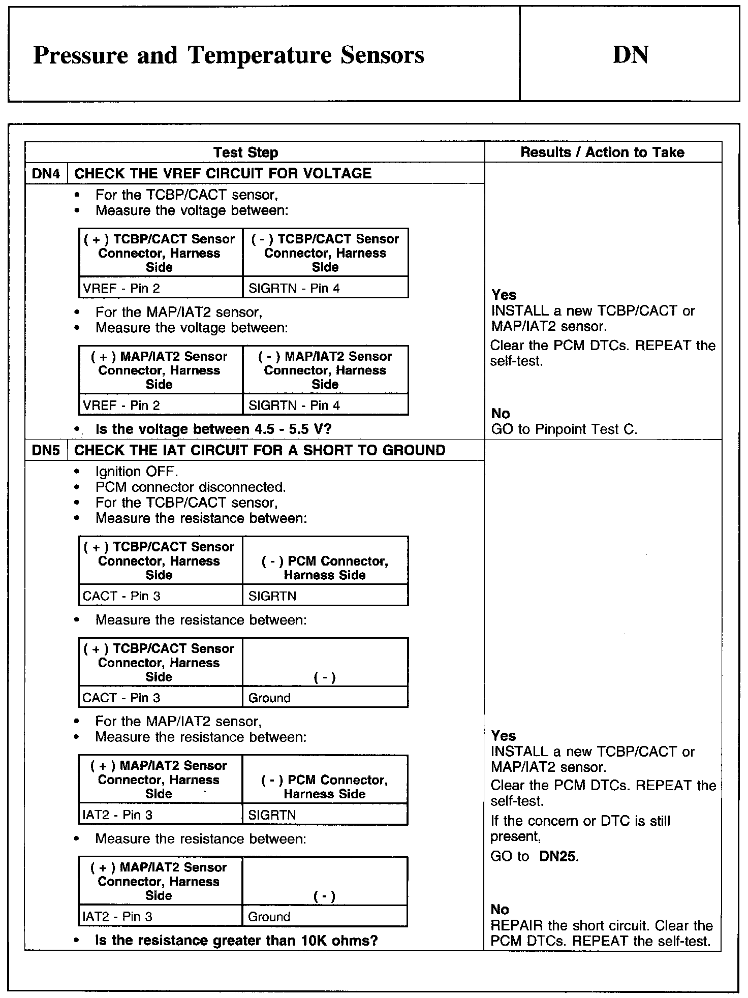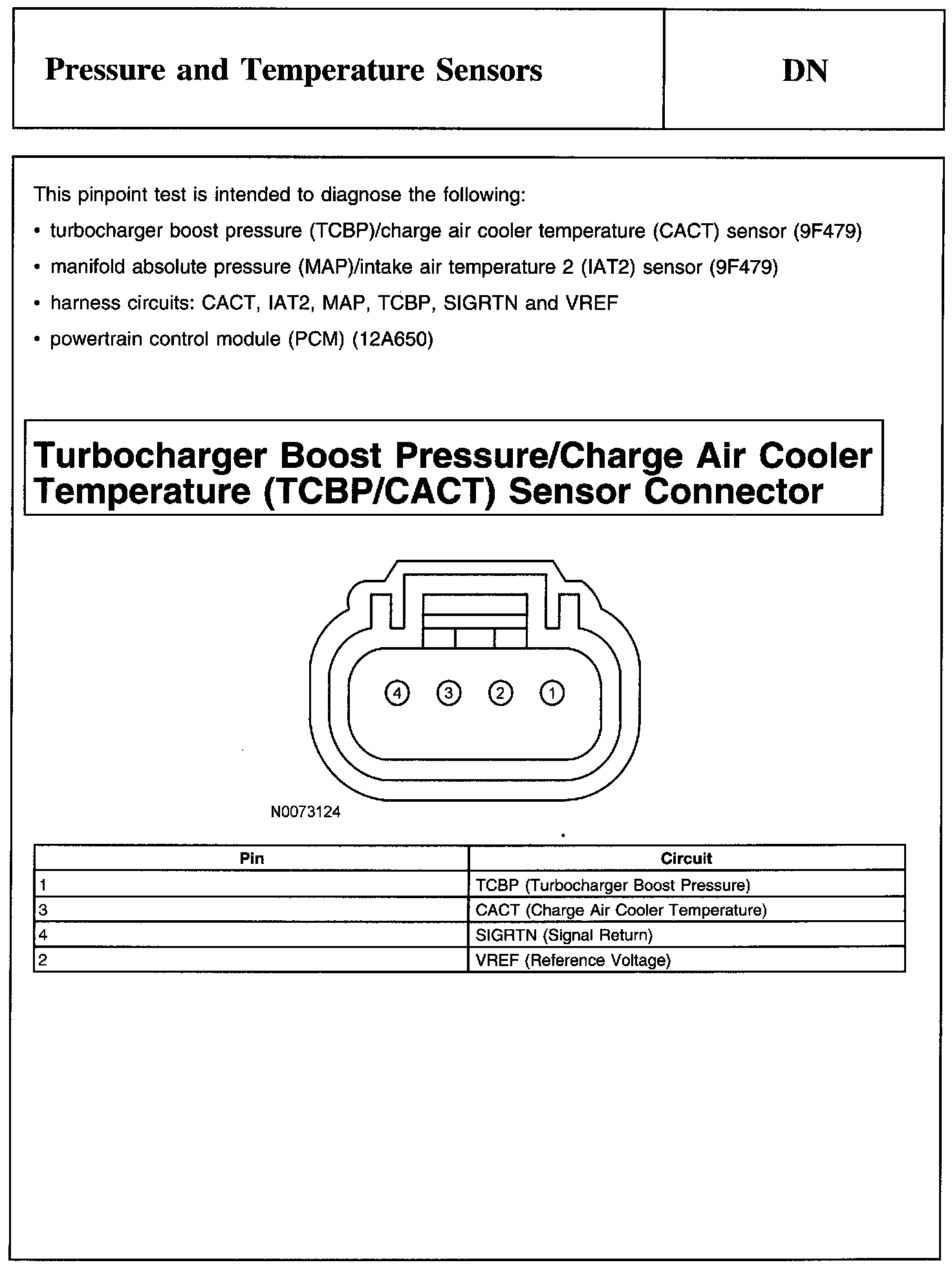 PINPOINT TEST DN: PRESSURE AND TEMPERATURE SENSORSTurbocharger Boost Pressure/Charge Air Cooler Temperature (TCBP/CACT) Sensor Connector: