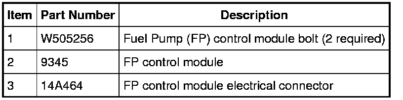 2. NOTE: The Fuel Pump (FP) control module is located near the left rear side of the fuel tank.