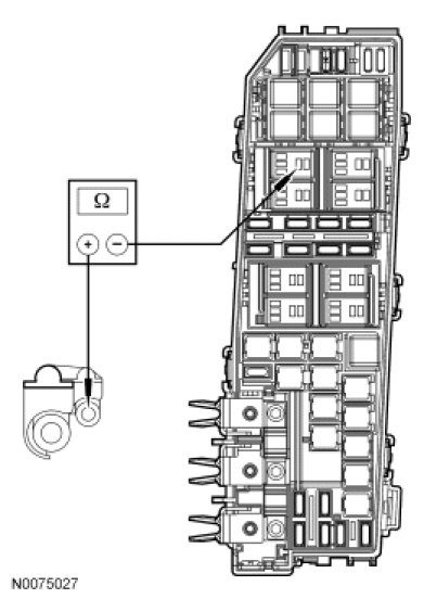 - Measure the resistance between BJB starter motor relay pin 2, circuit CDC54 (WH/GN), harness side and C175B-37, circuit CDC54 (WH/GN), harness side.