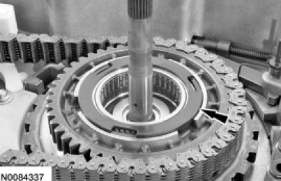 33. NOTE: The forward (1, 2, 3, 4) clutch snap ring is beveled. The beveled side of the snap ring goes up (flat side down).