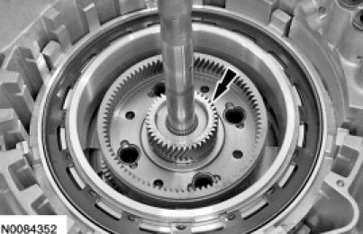 Remove the rear planetary sun gear and shell assembly and remove the intermediate (2, 6) clutch from the assembly.