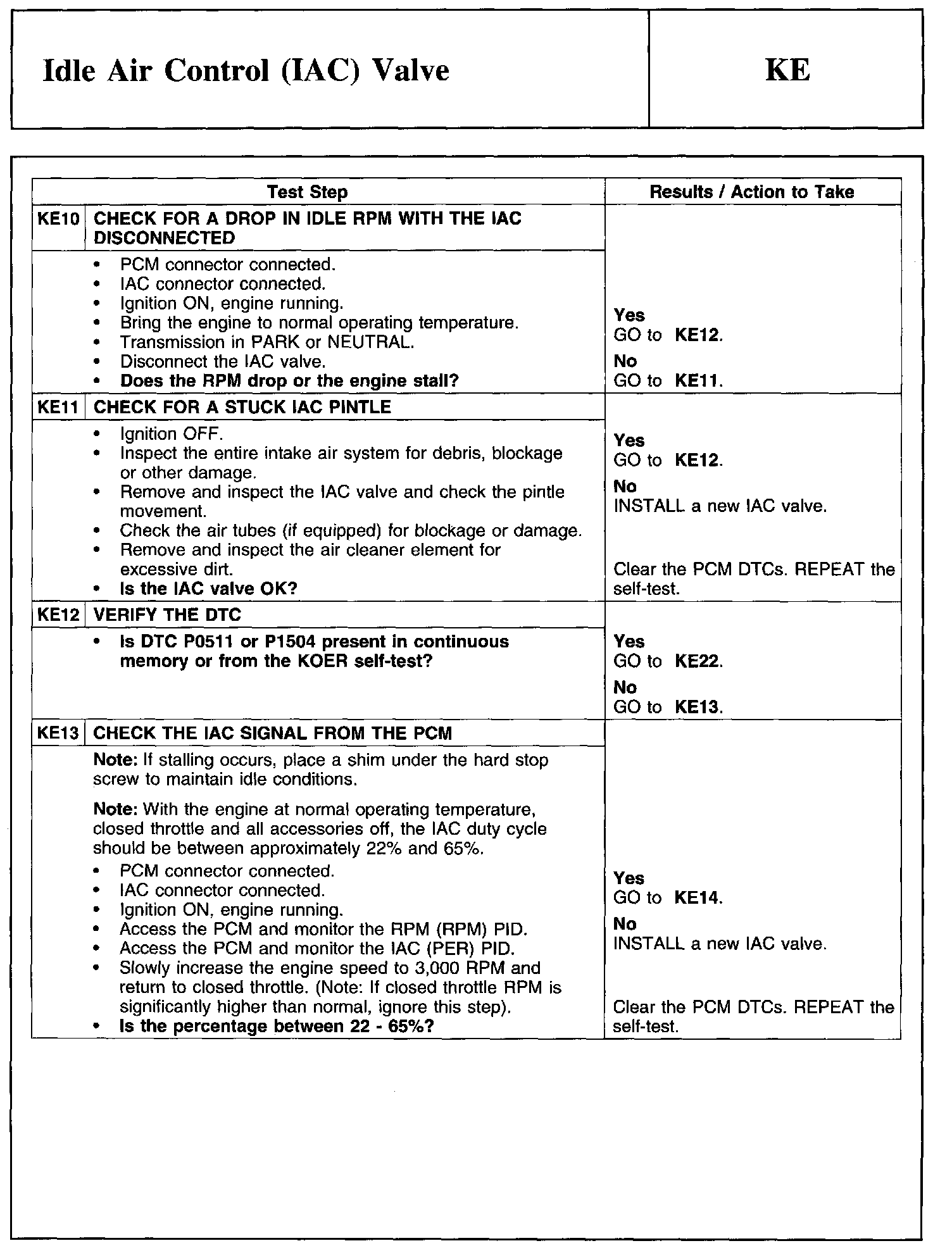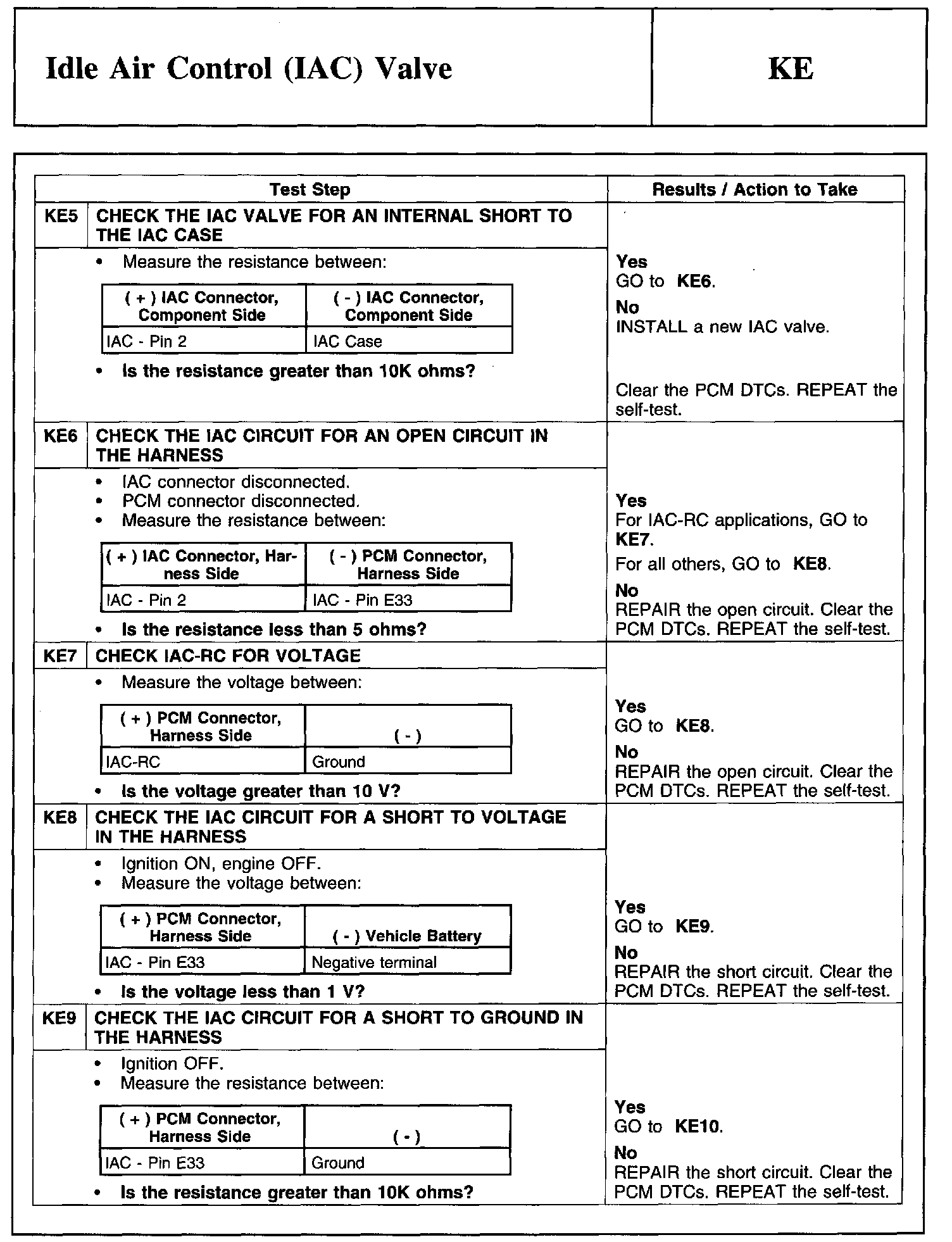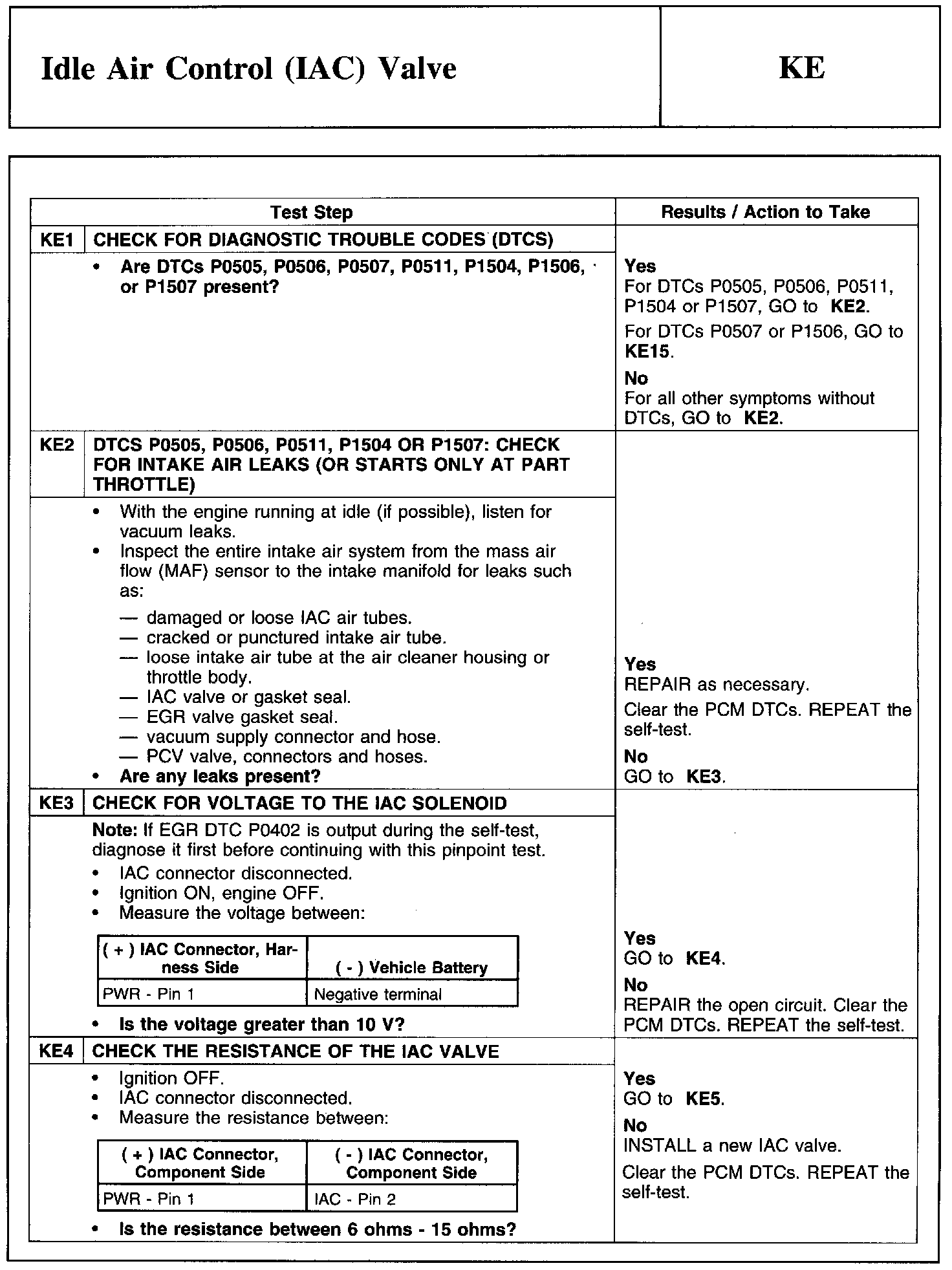 Test KE: Idle Air Control (lAC) Valve