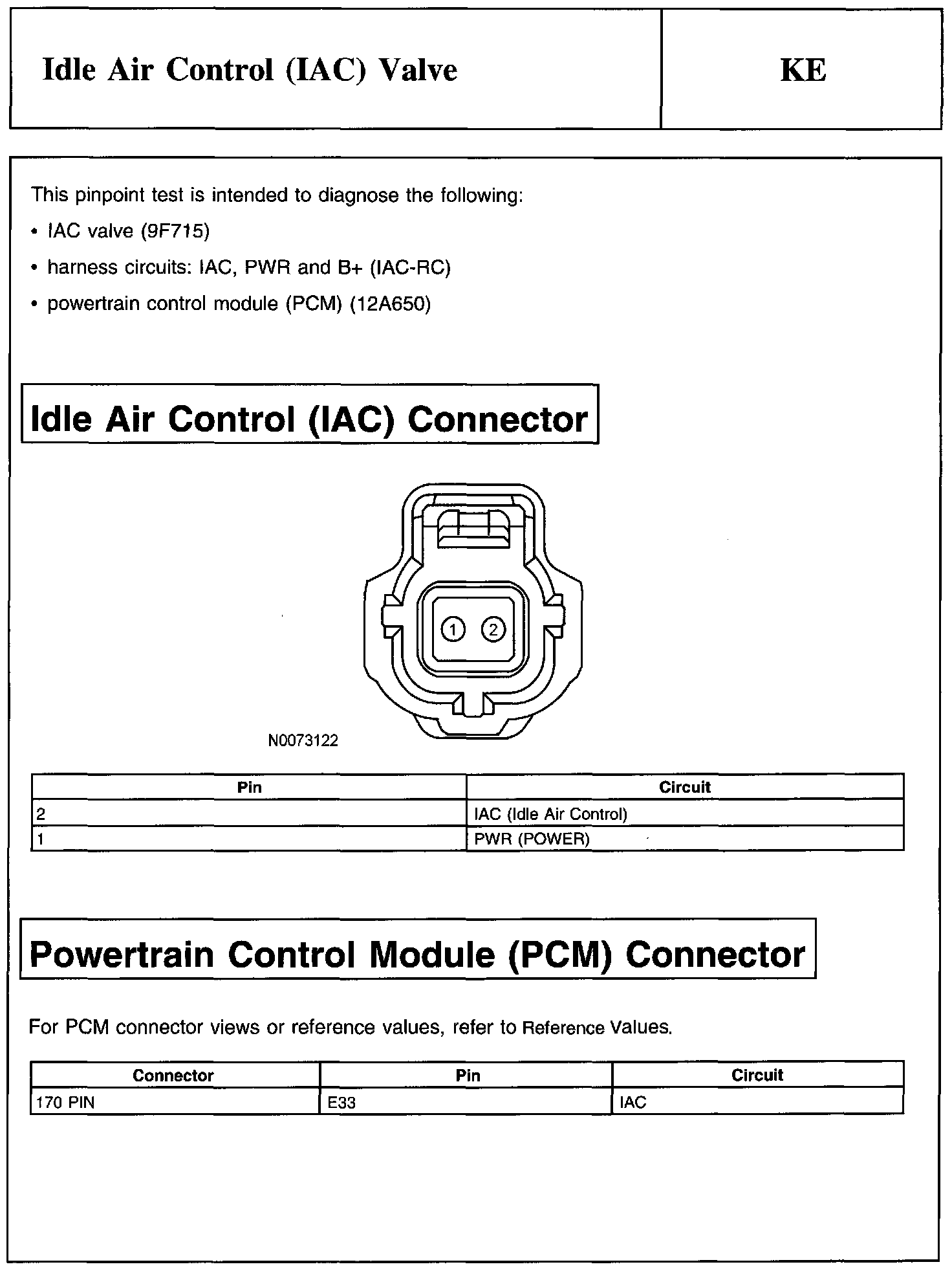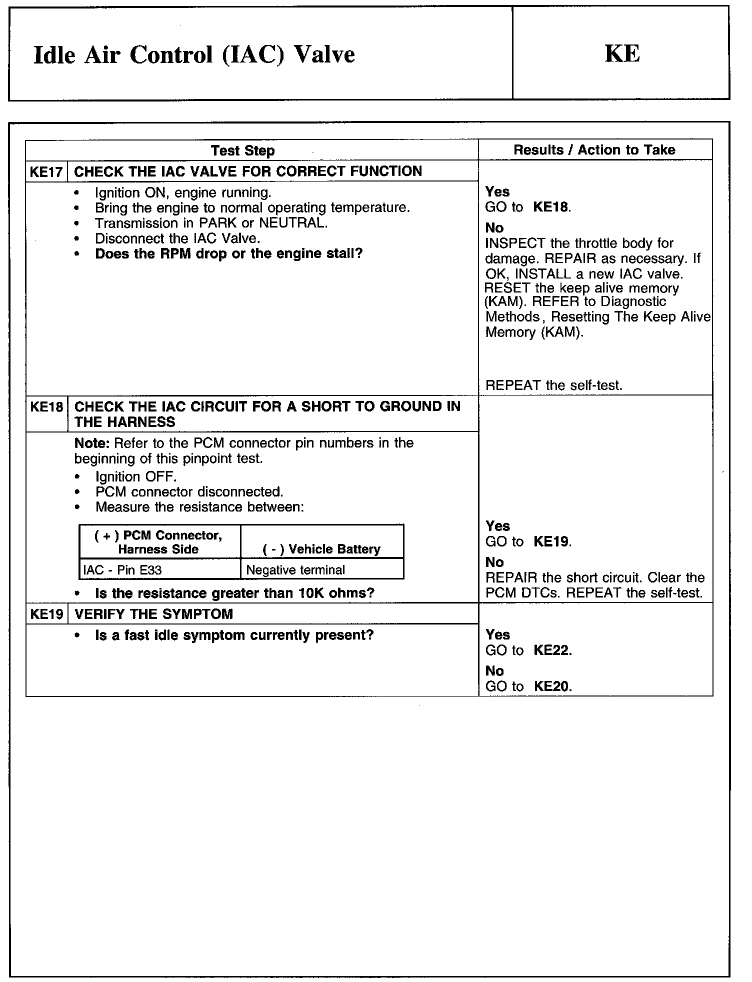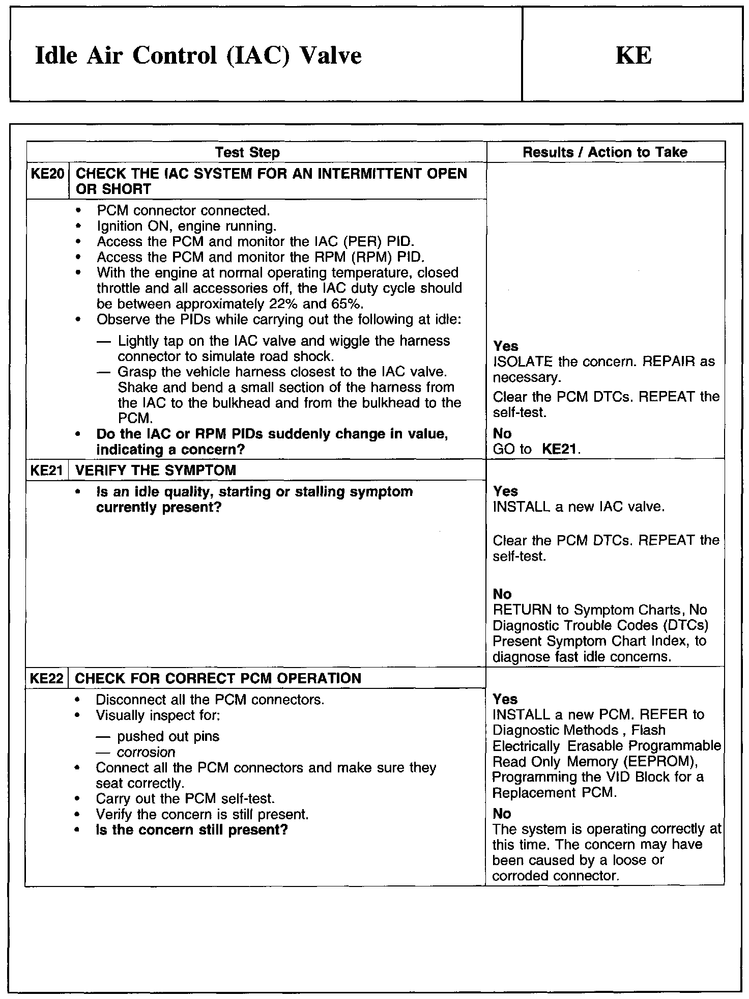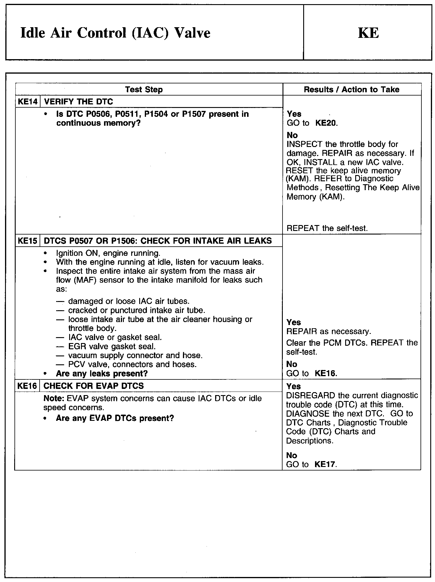 Test KE: Idle Air Control (lAC) Valve