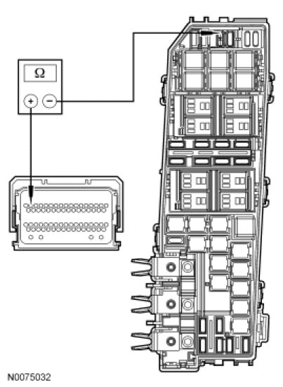 - Measure the resistance between Battery Junction Box (BJB) starter motor relay pin 2, circuit CDC54 (WH/GN), harness side and C175B-37, circuit CDC54 (WH/GN), harness side.