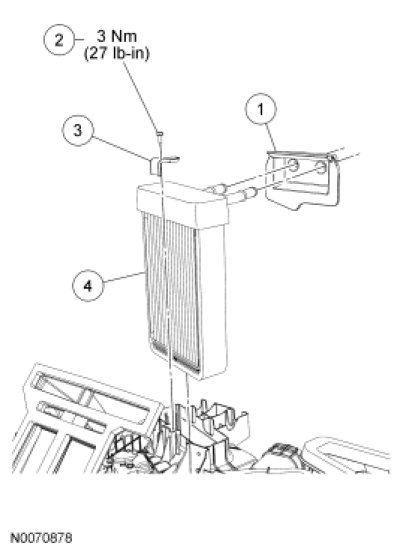 NOTE: If a heater core leak is suspected, the heater core must be leak tested before the heater core is removed. For additional information, refer to Climate Control System - General Information and Diagnostics Component Tests.