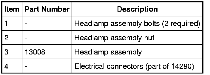 3. Remove the headlamp assembly nut and the headlamp assembly.