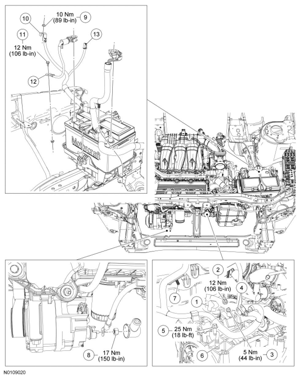 9. Open the Battery Junction Box (BJB) cover and remove the BJB terminal nut.