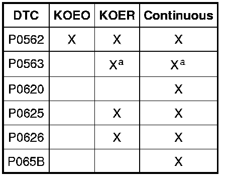 The PCM-controlled charging system, or "Smart Charge" charging system, determines the optimal voltage set point for the charging system and communicates this information to the voltage regulator. The "Smart Charge" charging system is designed to set 1 of 6 DTCs any time a charging system fault is present. All of the DTCs can set continuous faults, but not all DTCs will set as on-demand faults.