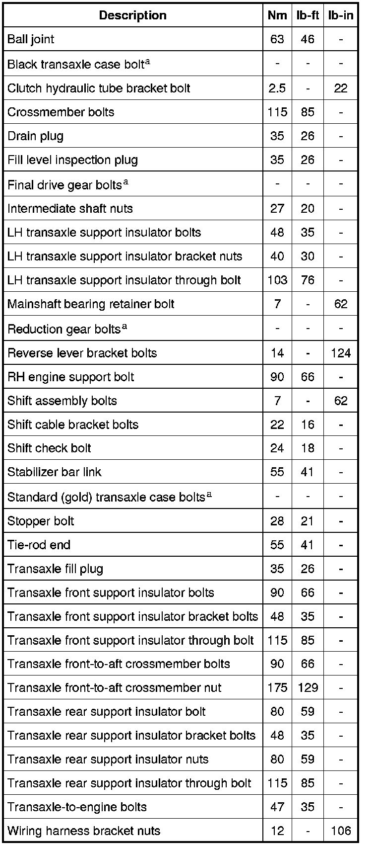 Torque Specifications