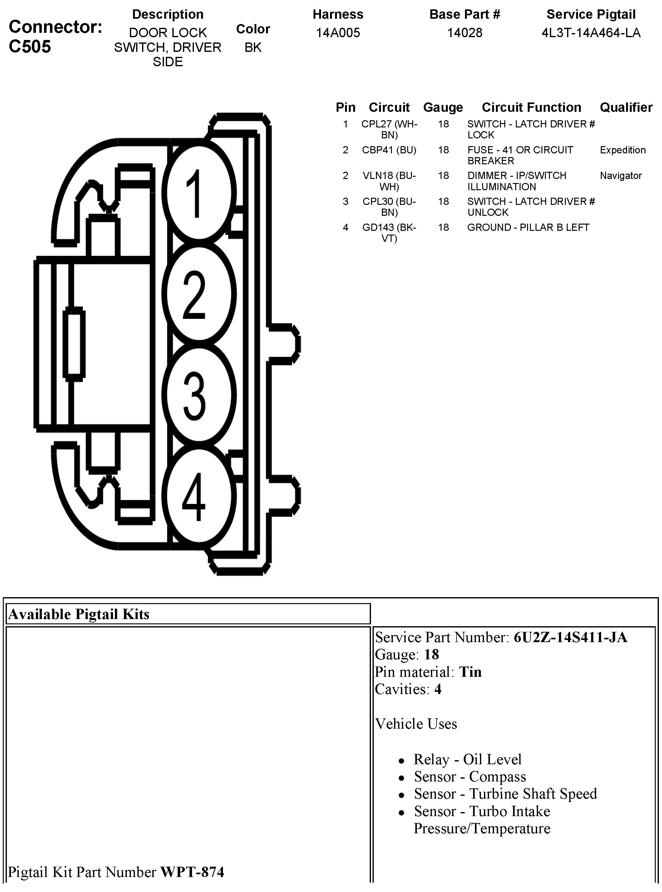 C505 Door Lock Switch, Driver Side