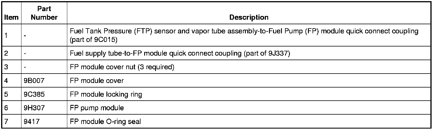5. NOTICE: Carefully remove the Fuel Pump (FP) assembly to avoid damaging the fuel level sensor.