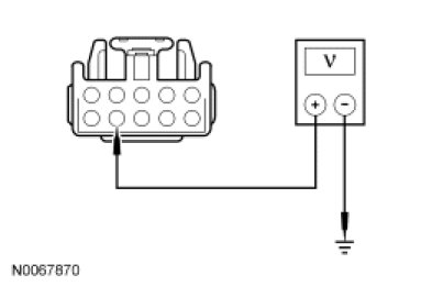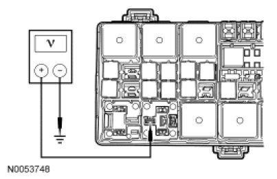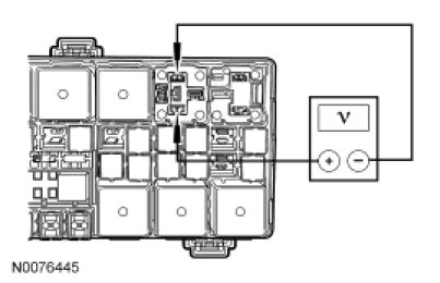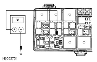 - Measure the voltage at the starter motor solenoid S-connector C197B-1, circuit CDC25 (BN/GN).