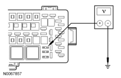 - Measure the voltage between ignition switch C250-9, circuit SBP27 (BU/RD), harness side and ground.
