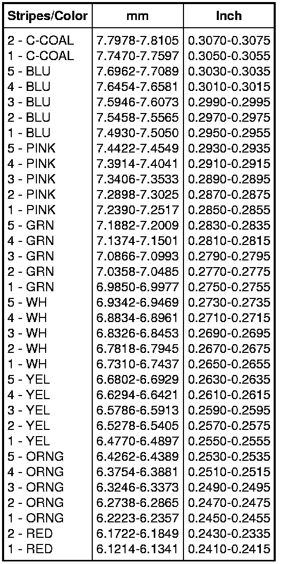 Differential Shim Size Chart