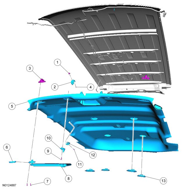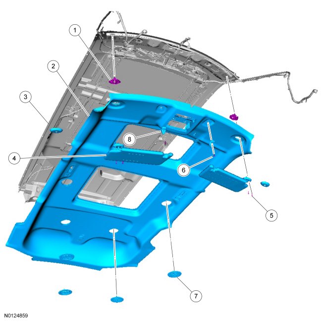 17. NOTICE: To avoid damaging the headliner, use an assistant for this step.