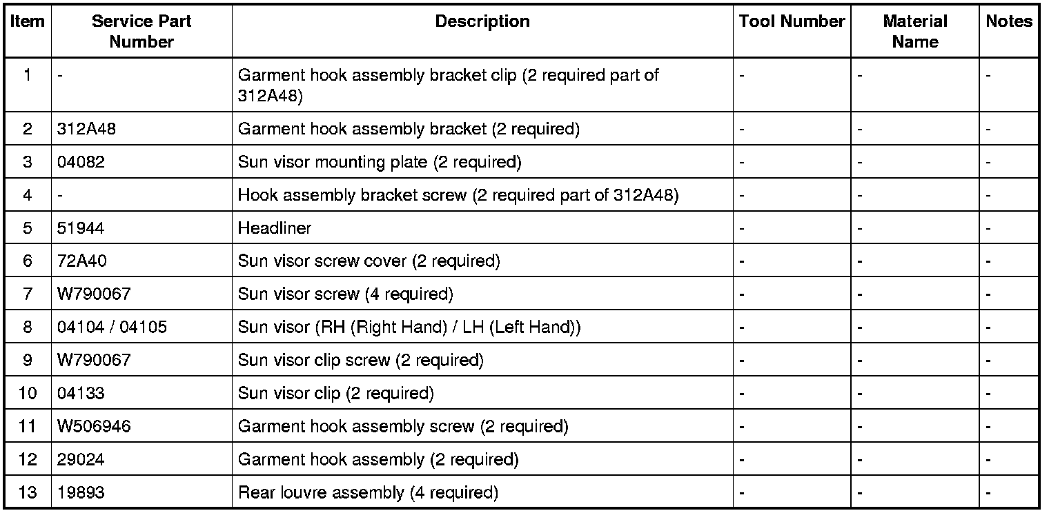 10. Remove both sun visor assemblies.