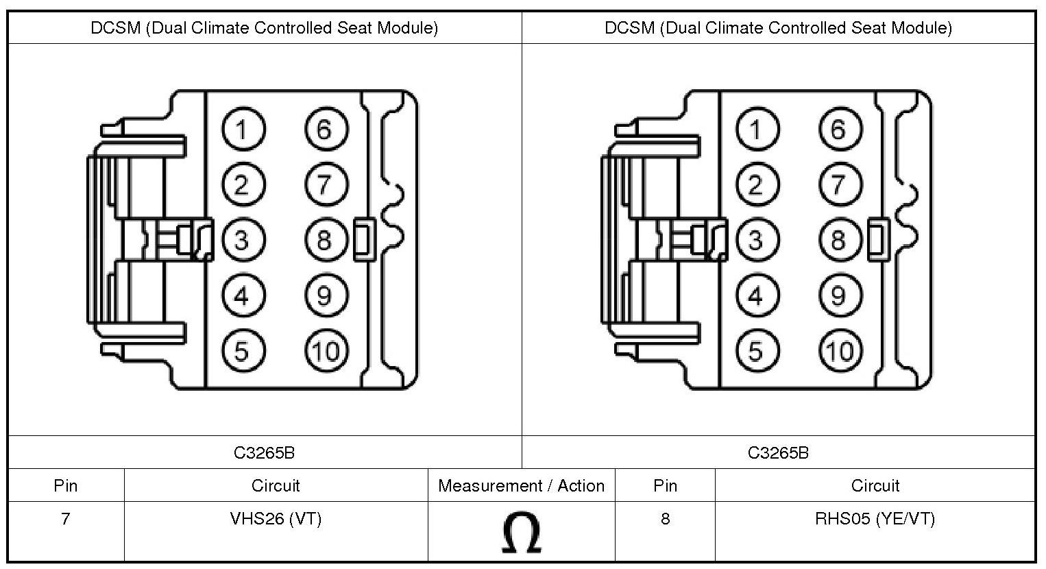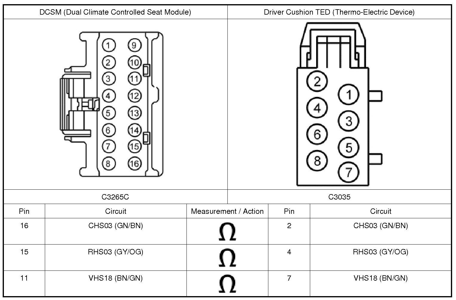 1. Disconnect: DCSM (Dual Climate Controlled Seat Module) C3265C.