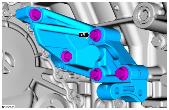 18. If equipped with AWD (All-Wheel Drive), install the 5 PTU (Power Transfer Unit) support bracket bolts and the PTU (Power Transfer Unit) support bracket.