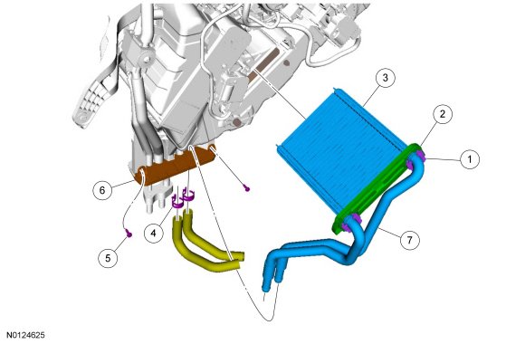 - Install the new O-ring seals included in the auxiliary heater core service kit.